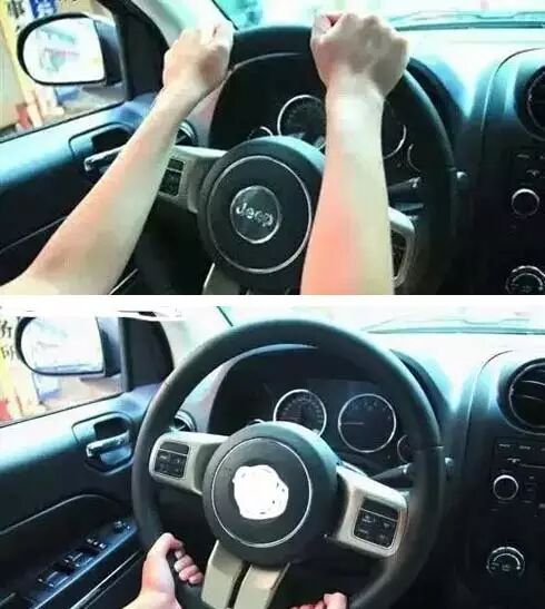 这种姿势应该很少有人用,因为大家在考驾照的时候,肯定都在教练的骂声中纠正过来了!